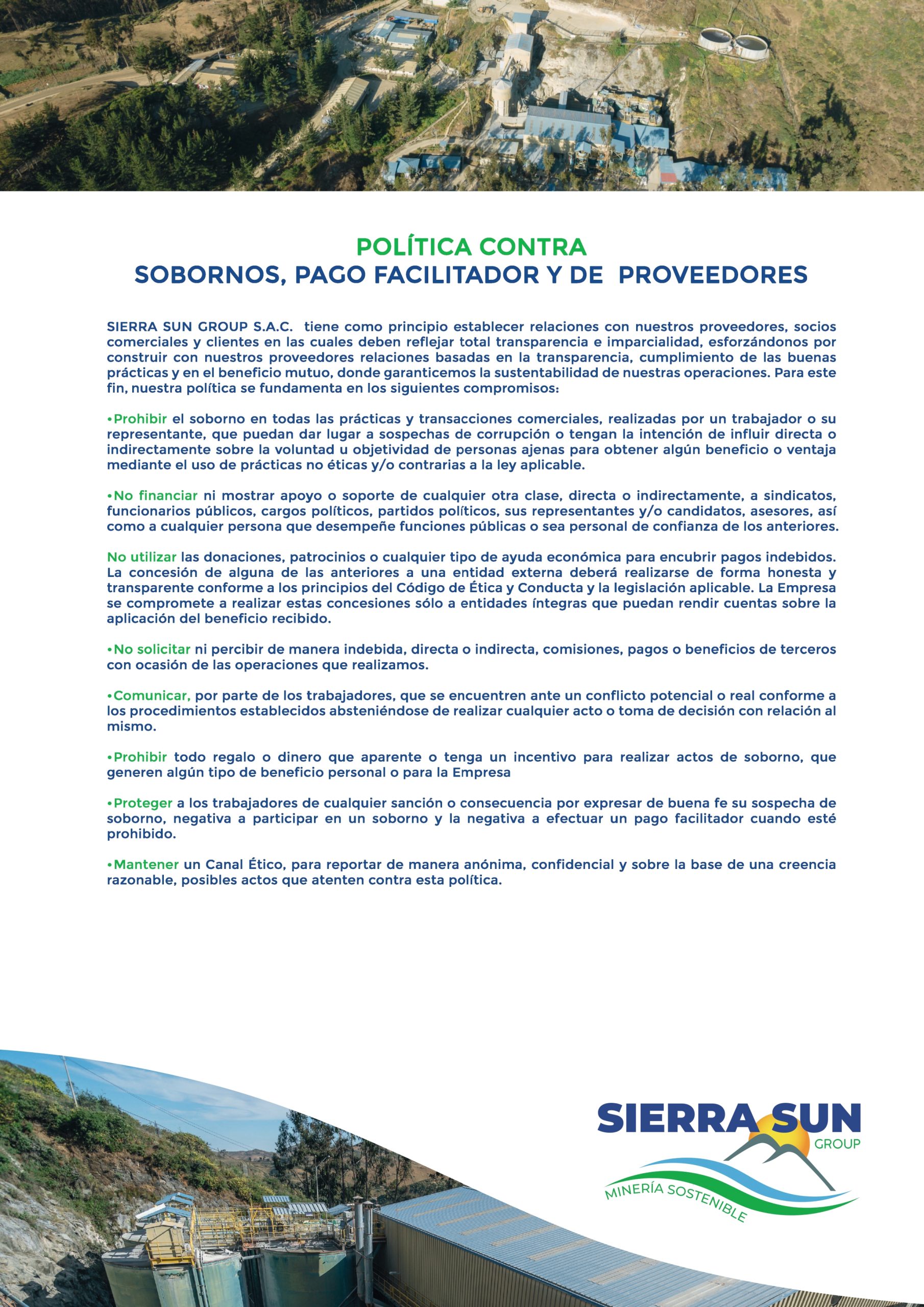 Una organización forjada en base a capitales peruanos con una sólida cultura empresarial basada en principios orientados al cuidado del medio ambiente, respeto a las comunidades de nuestro entorno y sobre todo, preocupada por el uso eficiente del agua, asegurando la calidad y la calidad de este recurso para las comunidades vecinas.